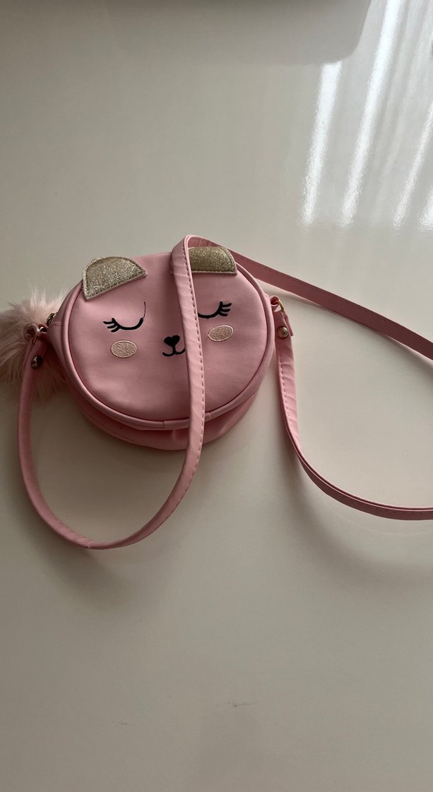 Pembe pastel renkte, nakışlı detaylara ve yumuşak kürk süslemelere sahip, trend sokak stili kız çantası.