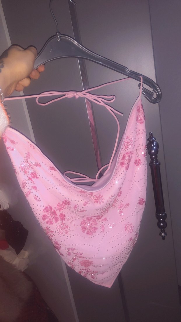 Sırtı bağlamalı taşlı pembe büstiyer istediğiniz gibi darlaştırıp bollaştirabilirsiniz