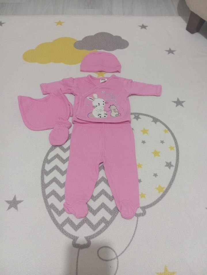 Pembe Nakışlı Örgü Bebek 5 li hastane çıkış