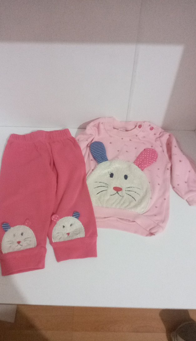Uzun kollu, örgü dokulu ve nakışlı detaylara sahip bebek kız takımı. Pastel pembe renk ve tavşan figürü ile sevimli bir görünüm sunar.