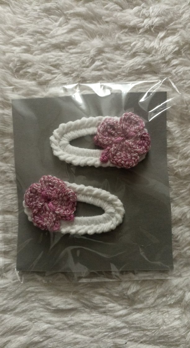 Pembe Nakışlı Örgü Çiçekli Çocuk Toka Seti
