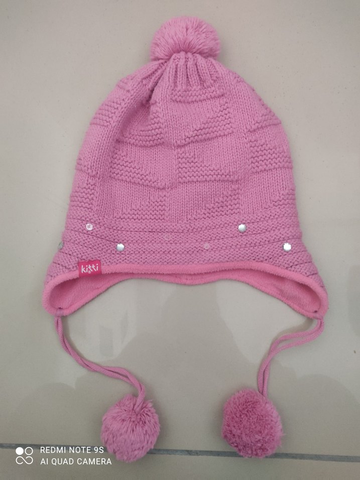 Pembe renkli, nakış detaylı örgü çocuk bere, bağcık uçlarında ponponlar bulunur. Yumuşak örgü kumaştan üretilmiştir.
