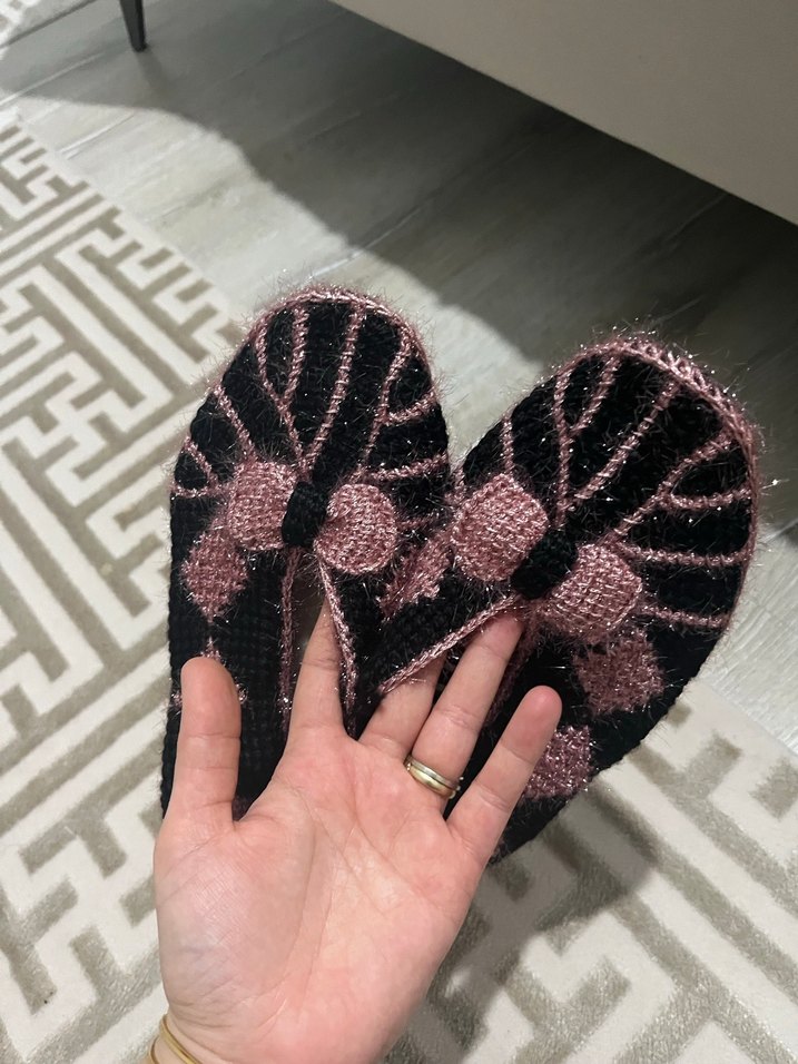Pembe Nakışlı Örgü Kadın Terlik