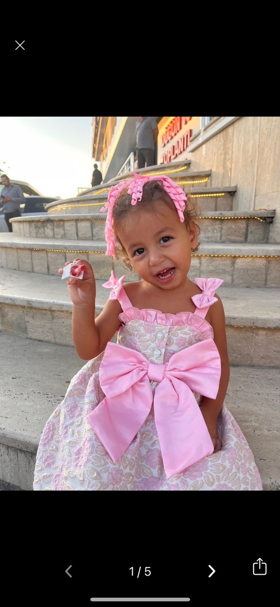Pembe nakışlı, straplez ve askılı pamuklu kumaştan yapılmış, büyük fiyonk detaylı, klasik zarafette bohem tarzda kız çocuk elbisesi. 1 2 yaş geçiyor ama 3 yaşada olur