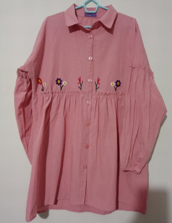 Pembe renkli bu Tunik, uzun kollu ve düğmeli ön yapıya sahiptir. Yumuşak pamuktan üretilmiş, nakışlı çiçek detayları ve salaş, bohem kesimi ile tekne yaka sunar. Günlük kullanıma uygundur.