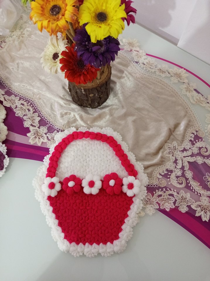 Pembe renkte, sepet ve çiçek nakışlı gelin çeyiz lifi