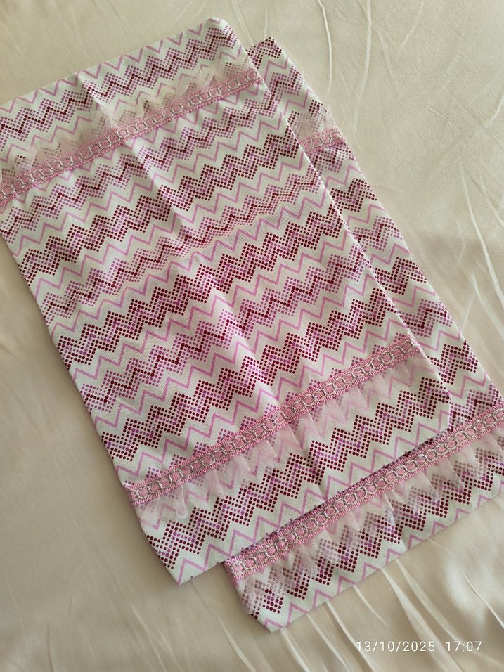 Pembe tonlarında renkli nakışlı zigzag desenleri bulunan yastık kılıfı. İnce işlemeler ve yumuşak dokusu ile öne çıkar. 3 adet var tane fiyatı , küçük model