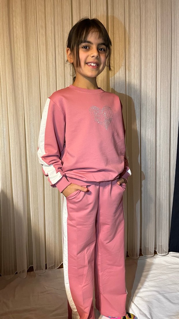 Pembe Nakışlı Salaş Kız Eşofman Takımı