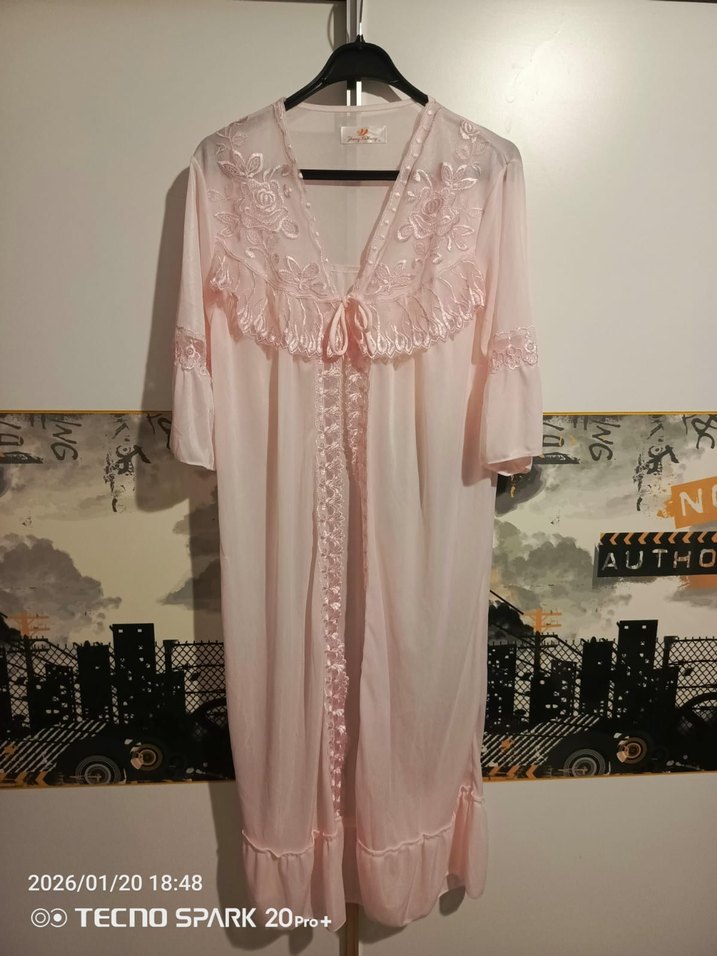 Pembe Nakışlı Uzun Kadın Gecelik