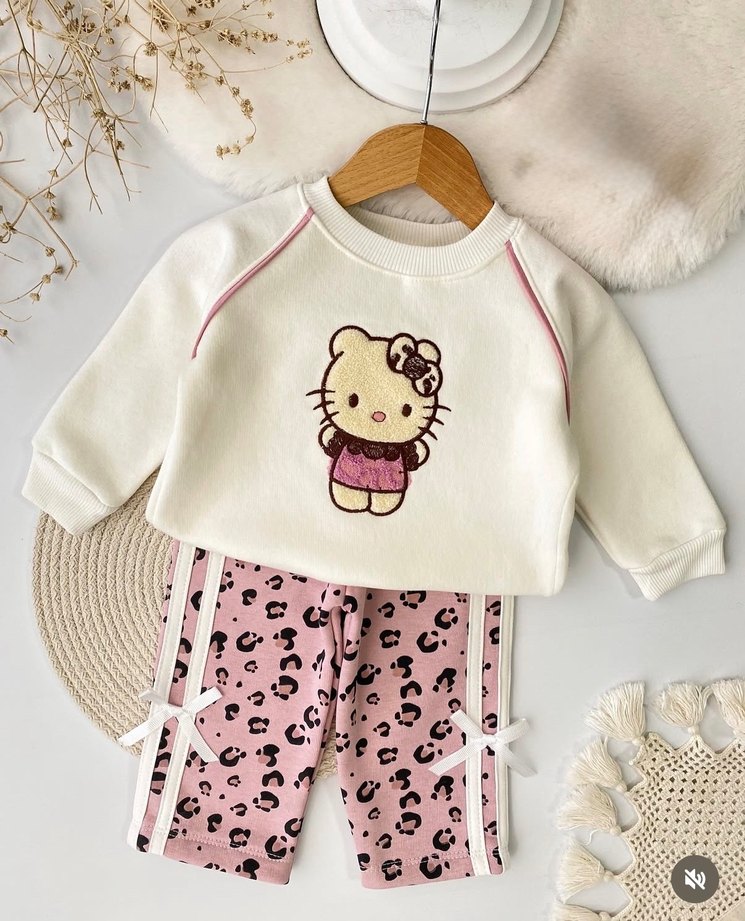 Pembe Nakışlı Uzun Kollu Bebek Kız Takımı