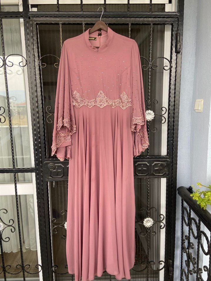 Pembe Nakışlı Uzun Kollu Kadın elbise