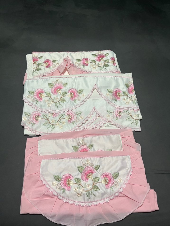 nakışlı çiçek desenleriyle süslenmiş , zarif bir görünüm sunar. Çeyiz için yapılmıştır hiç kullanılmamıştır çift kişilik pike takımı