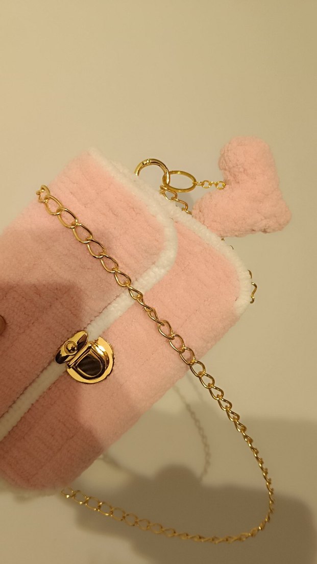 Pembe renkli, yumuşak ve sıcak dokulu nakışlı kadın çantası, altın renk zincir detayıyla günlük sokak stiline uygundur.