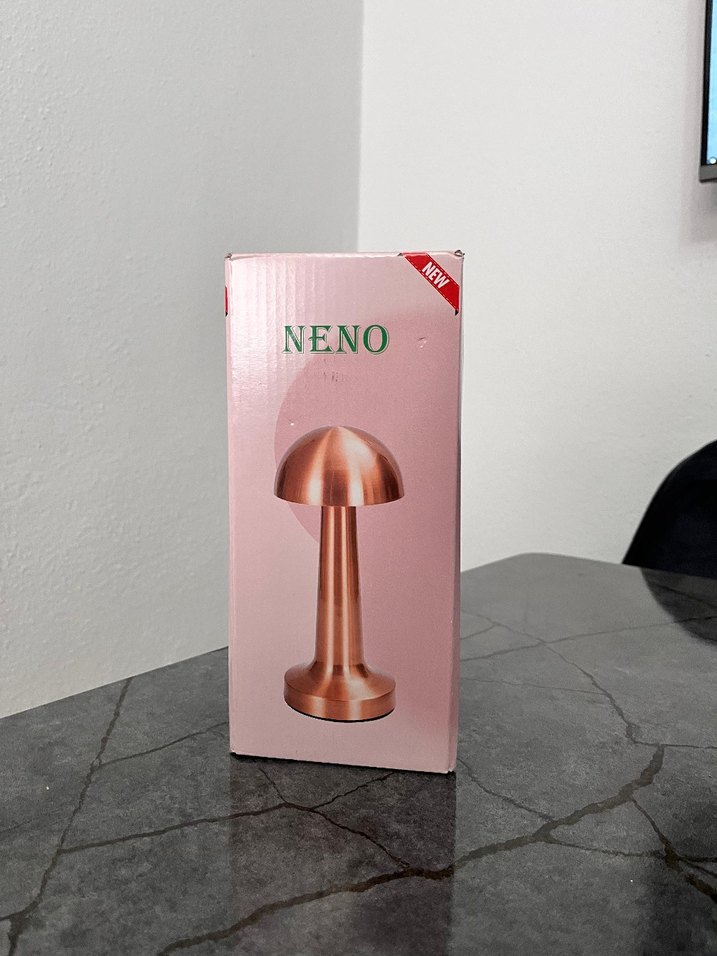 Pembe renkli NENO masa lambası, mantar şekilli başlığı ile modern ve şık bir tasarıma sahiptir.