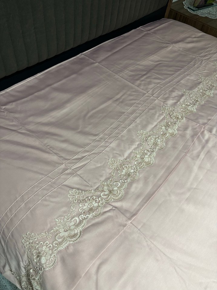 Çeyizlik el dikimi hiç kullanılmamış nevresim takımı fermuarlıdır çarşafı ve yastıkları vardır
