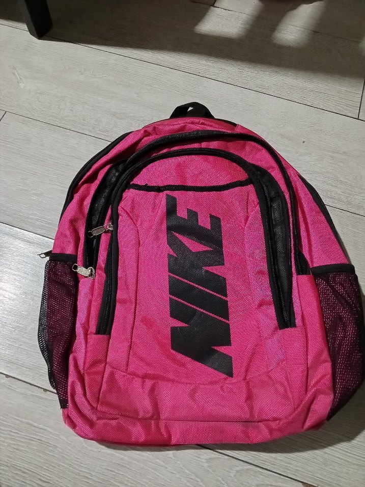 Renkli pembe Nike çocuk okul çantası, çoklu fermuarlı bölmeler ve yan file ceplerle düzen sağlar. nıke marka okul çantası rengi çok güzel çok fazla bölmeleri var yan file cepler mevcut kumaşı su geçirmez sorunsuz aynı gün kargo ortopedik sırt mevcut