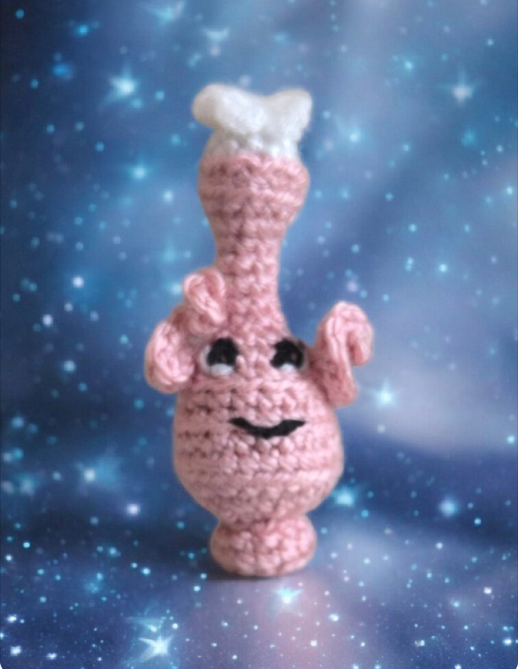 pembe pastel renkte, sevimli gülümseyen yüz ve kulaklara sahip amigurumi oyuncak. Dekoratif veya hediye olarak kullanılabilir. yükseklik 8cm