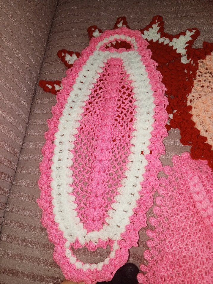 Pembe ve beyaz renklerde, iki ucu tutmaçlı örgü banyo lifi, yumuşak dokusuyla nazik temizlik sağlar.