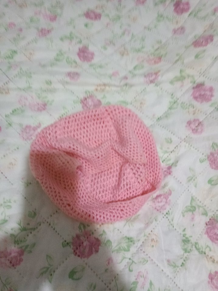 Pastel pembe renkli, örgü bohem tarzda kadın beresi. Yumuşak örgü malzemesi ile rahat ve sıcak tutar.