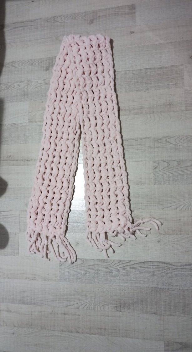 Pembe örgü kadın şal, bohem tarzda, püsküllü uçlarıyla rahat ve retro bir görünüm sunar. el emegidir .temiz ve çok az kullanildi.ihtiyac fazlası olduğu için satıyorum