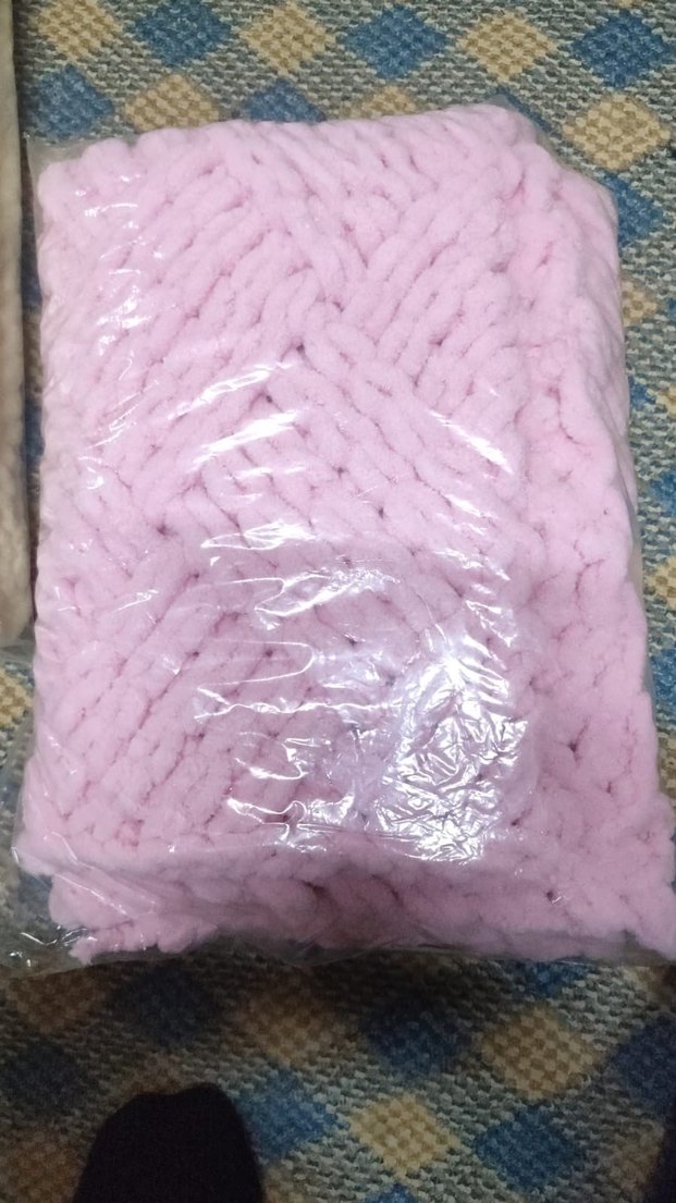 Pastel pembe renkli, yumuşak örgü kumaştan yapılmış, sade desensiz çocuk battaniyesi, sıcaklık ve konfor sağlar.
