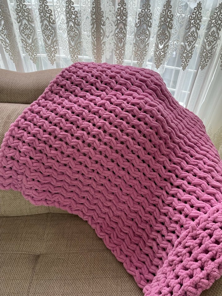 Pastel pembe renkte, kalın örgü dokusuyla yumuşak ve sıcak tutan bebek battaniyesi. Kişiye özel istediği renkte boyutta yapılır.
