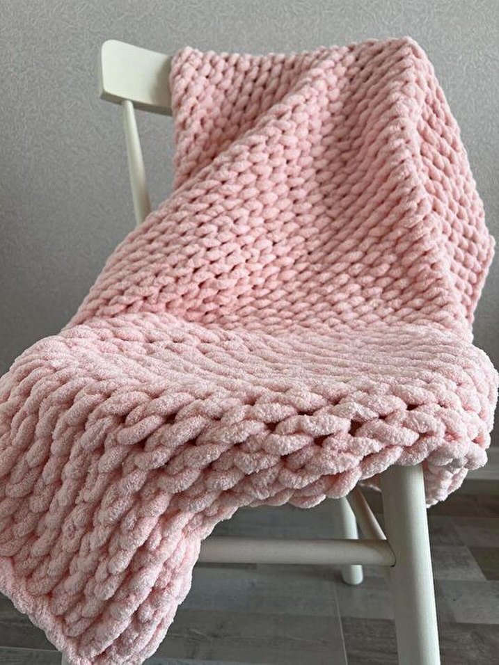 Pastel pembe renkli, yumuşak örgü çocuk battaniyesi. Desensiz ve konforlu yapısıyla sıcaklık sağlar.