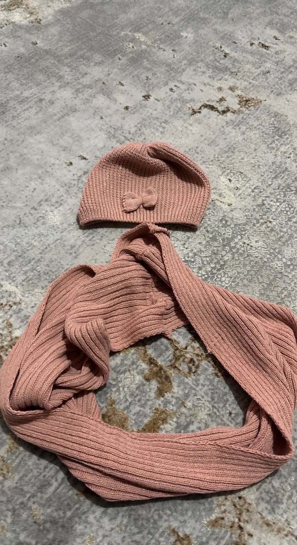 Pembe Örgü Çocuk Bere ve Atkı Seti