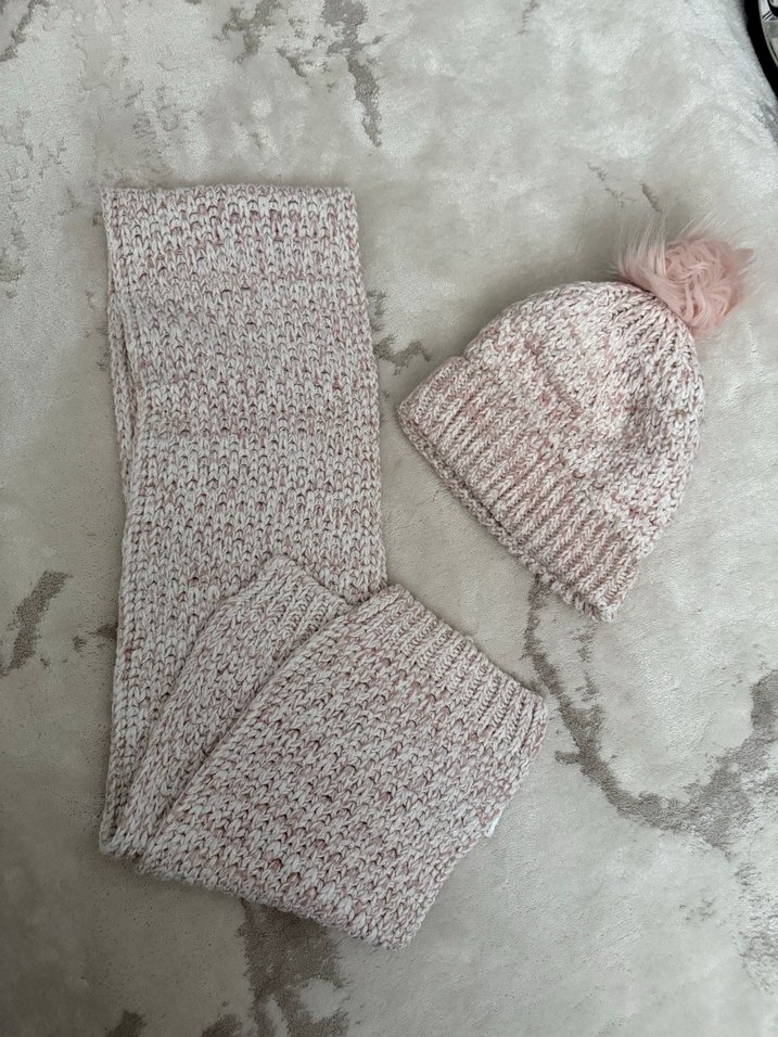 Pembe Örgü Çocuk Bere ve Atkı Seti