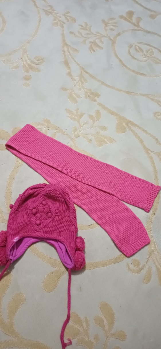 Pembe Örgü Çocuk Bere ve Atkı Takımı