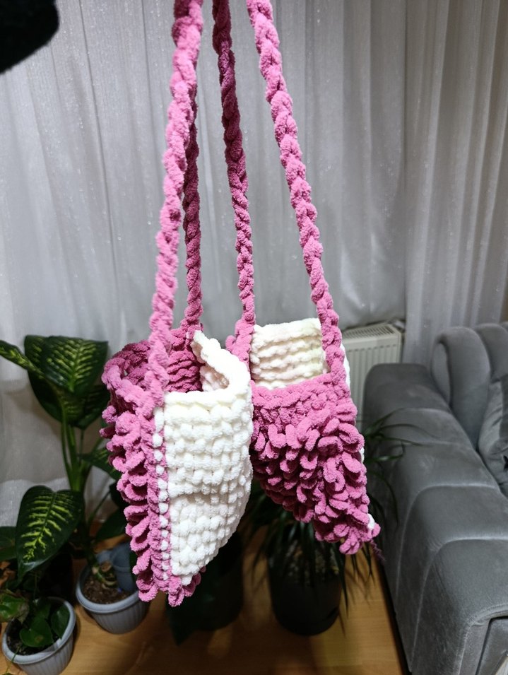 Pembe örgü dokusuyla bohem tarzda, günlük kullanıma uygun çocuk çantası. Pastel tonu ile rahat ve şık bir görünüm sunar.