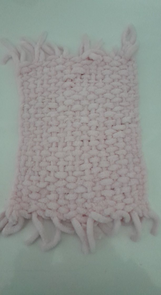 Pastel tonlarda pembe örgü çocuk lifi, püskül detaylıdır. Çocuklar için yumuşaklık ve rahatlık sağlar.