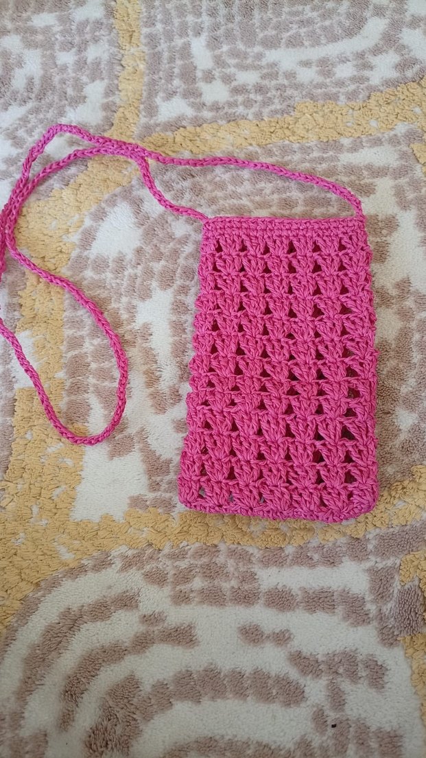 Pembe Örgü Dantel Kadın Telefon Çantası