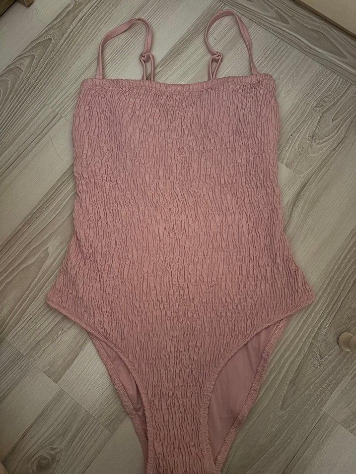 Pembe Örgü Detaylı İnce Askılı Mayo