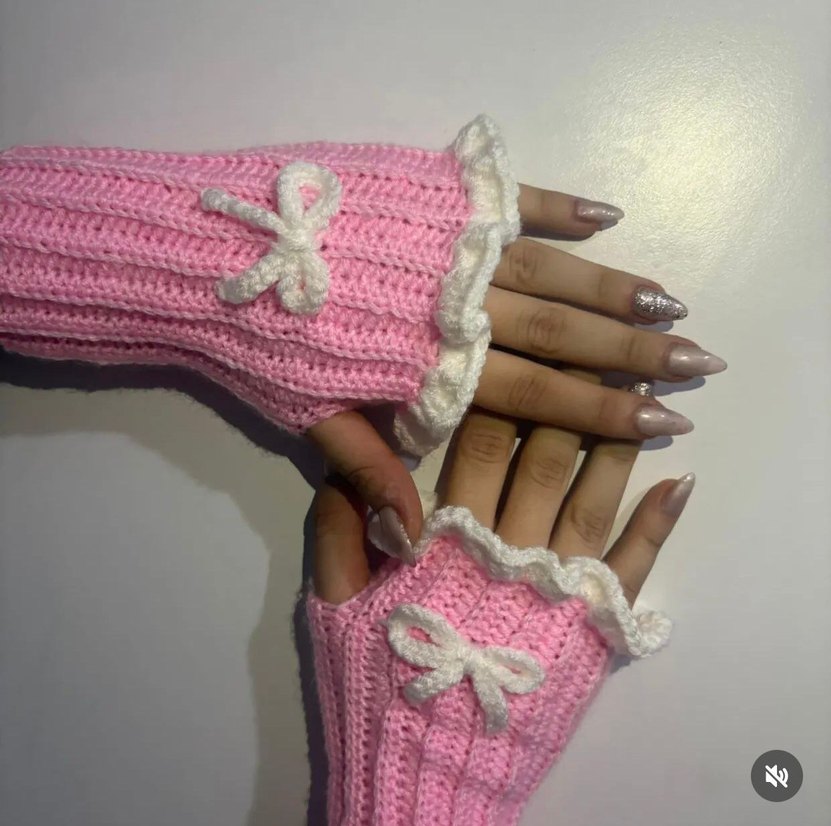 Pembe örgü eldivenler, beyaz fırfır kenarlar ve fiyonk detayları ile rahat bir tasarım sunar. ‼️‼️Ürünler sipariş üzerine yapılacağı için alıcıların sipariş oluşturmadan önce mesaj atması gerekmektedir.‼️‼️