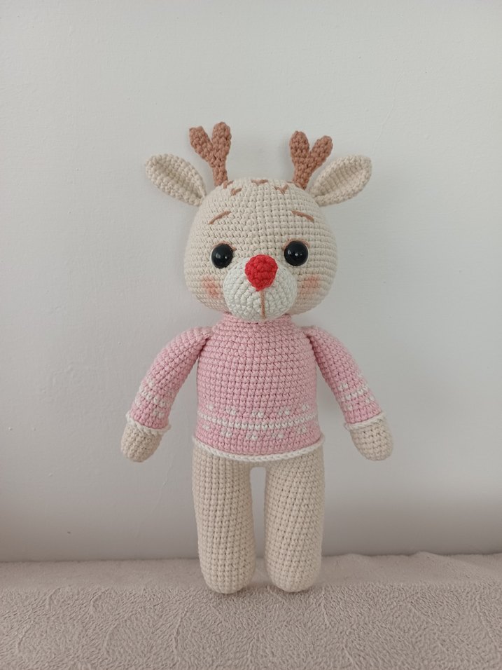 Pembe Örgü Geyik Peluş Oyuncak