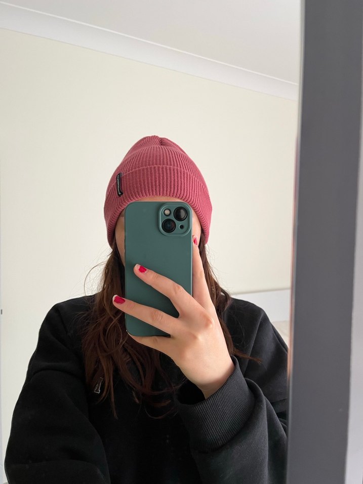 Pastel pembe örgü kadın bere, rahat ve zahmetsiz şıklık sunar, sokak stili ve trend günlük kombinlere uygundur.