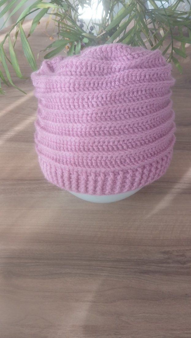 Yumuşak örgü kumaştan yapılmış pembe tonlarında kadın bere. Rahat ve sade tasarıma sahip, günlük kullanıma uygun.