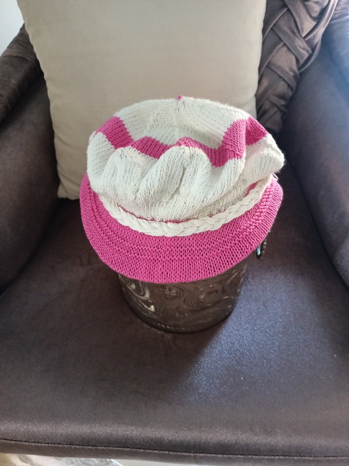 Kadın bere, açık pembe ve beyaz renklerde örgü tasarıma sahip, rahat ve retro bohem tarzıyla öne çıkar. Rahat ve özgün bir görünüm sağlar.