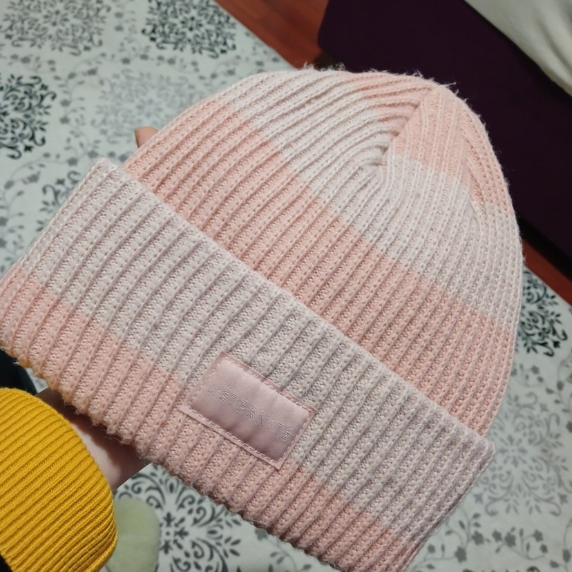 Pembe örgü kadından bere, pastel tonlarda yumuşak ve rahat bir kullanım sunar. Katlanabilir manşeti ile ekstra sıcaklık sağlar. cift kat kalın hm marka bere