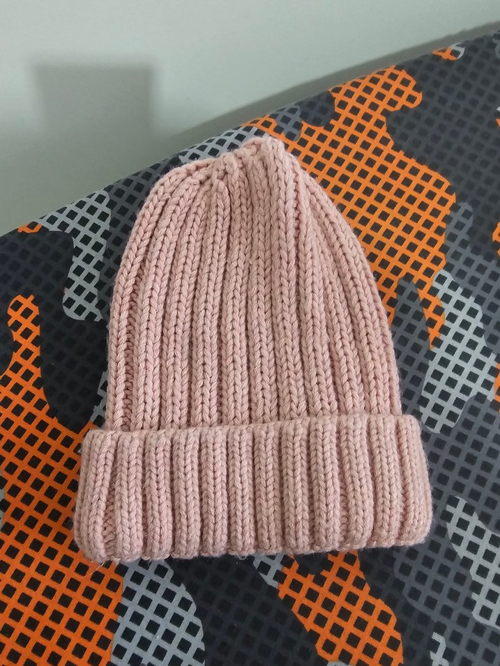 Yumuşak pembe renkte, örgü dokulu kadın bere. Rahat ve sade tasarımıyla sokak modasına uygun, sıcak tutar.