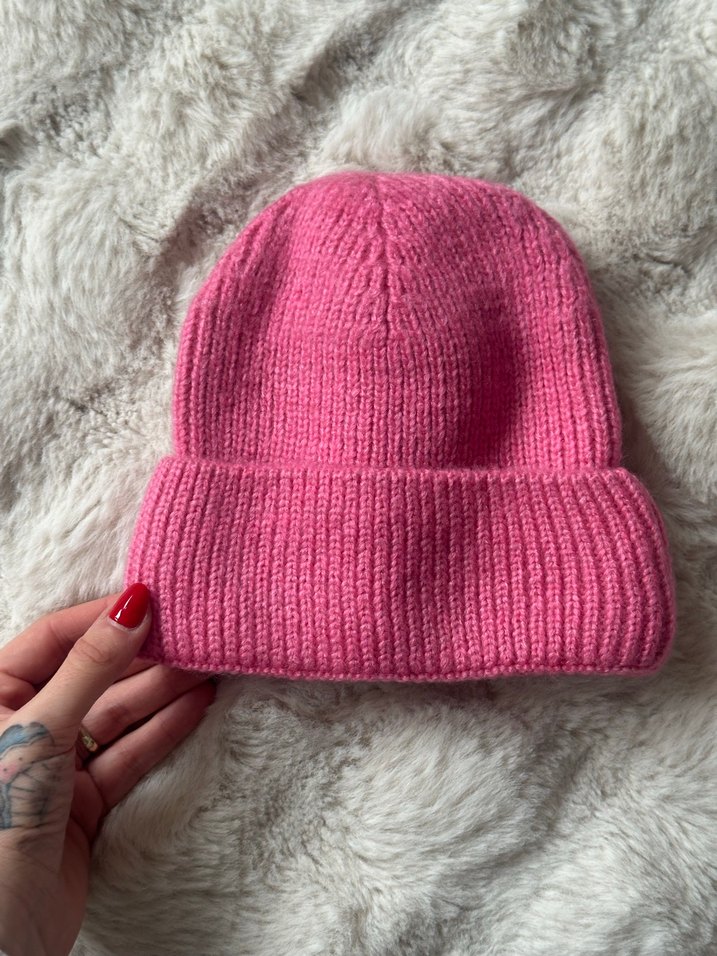 Pastel pembe renkte, örgü dokulu ve katlamalı tasarıma sahip, rahat ve sıcak tutan kadın bere. Yumuşak örgü kumaştan üretilmiştir.