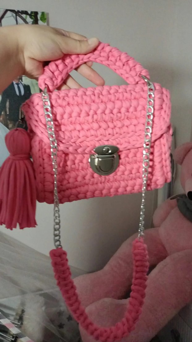 Pembe örgü kadın çanta, renkli ve rahat bohem tarzıyla gümüş toka ve zincir askıya sahiptir. Trendy gündelik kullanım için uygundur.