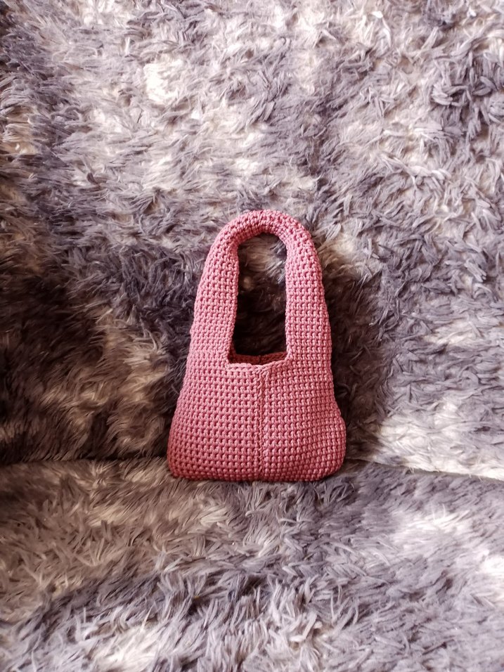 Pembe pastel renkte, örgü tasarıma sahip kadın çantası. Desensiz, rahat örgü kumaşıyla günlük kullanıma uygun sade normcore stilinde.