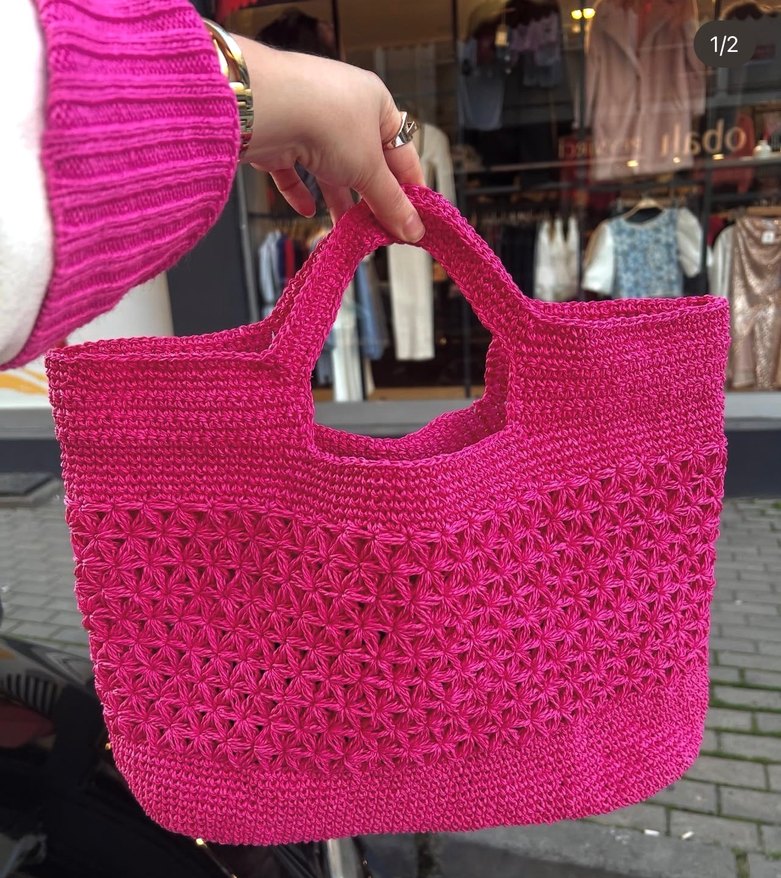 Renkli pembe örgü kadın çanta, rahat bohem tarzıyla günlük kullanım için uygundur.