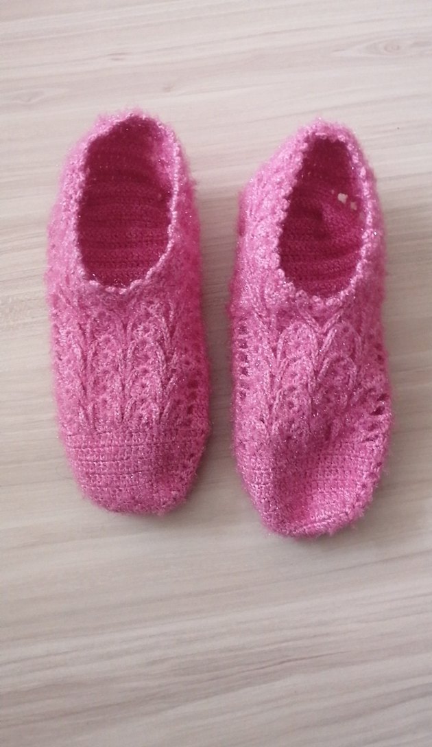 Yumuşak dokulu, günlük kullanıma uygun pembe örgü kadın ev terliği. Kodu Ü 138