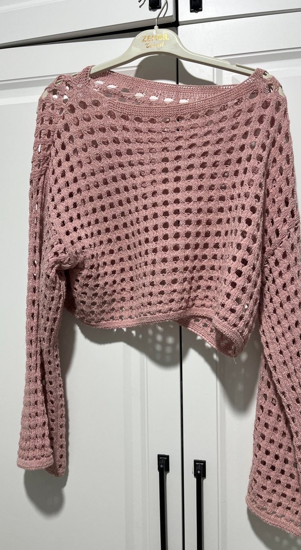 Pembe renkli, uzun kollu, yuvarlak yakalı, gevşek kesim örgü kadın kazak. Günlük kullanıma uygun rahat ve desensiz tasarım.