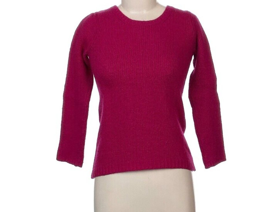 koyu Pembe yumuşak yünden örülmüş, bisiklet yaka ve fakir kollu, vücuda oturan kadın kazak. Günlük kullanım için sade ve çağdaş tarzda, normal boyda.