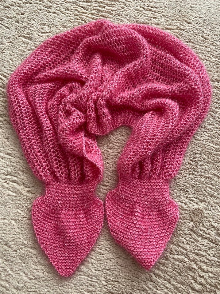 Pembe renkte, örgü kadın şalı, yumuşak ve sıcak dokusuyla bohem tarzda rahatlık sunar.