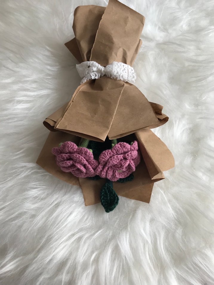 Örgü ipten yapılmış, pastel pembe renkte. Rahat ve bohem tarzıyla hediyeliğe çok uygun. #Gülbuketi #öğretmrnlergünühediyeliği #hediyelik